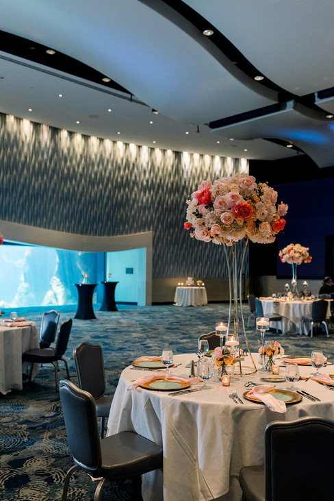 I absolutely loved planning a wedding at the Georgia Aquarium! They have some beautiful spaces to choose from for couples wanting a unique experience for their day. Christine and Robert held their ceremony in the Antarctic Pre-Function Space, their Cocktail Hour/Tea Ceremony in the Indian Room Foyer, and their reception in the Arctic Ballroom. We had a blast customizing these spaces to match the theme of their wedding, and everything looked beautiful!